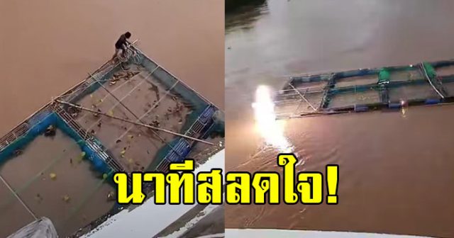ขณะที่เจ้าหน้าที่สามารถกู้แพปลาไว้ได้ริมตลิ่ง แต่ร่างผู้ประสบเหตุยังคงสูญหายอยู่ในแม่น้ำ