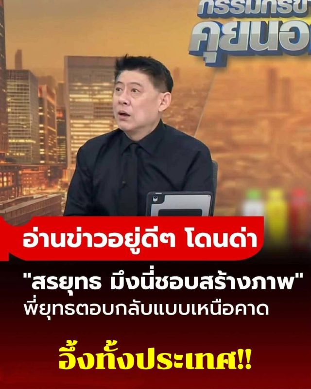 ในรายการ “กรรมกรข่าว คุยนอกจอ” ประจำวันที่ 27 พฤศจิกายน 2568 ขณะที่ สรยุทธ สุทัศนะจินดา และ เฟิร์น สุชาดา นิ่มนวล กำลังรายงานสถานการณ์น้ำท่วมใหญ่ในพื้นที่หาดใหญ่ จังหวัดสงขลา และหลายจังหวัดในภาคใต้ สรยุทธได้หยิบแท็บเล็ตขึ้นมาอ่านคอมเมนต์จากทางบ้าน ซึ่งมีข้อความหนึ่งระบุว่า “เมืองนี้ชอบสร้างภาพจริงๆ นะ” ทันทีที่อ่านจบ สรยุทธได้ชี้แจงว่า ตนเองนั่งอยู่ที่นี่ (สตูดิโอ) แท้ๆ ไม่ได้ลงไปในพื้นที่จริง ยังโดนกล่าวหาว่าสร้างภาพ ถ้าลงไปจริงๆ จะขนาดไหน พร้อมบอกทีมงานทีเล่นทีจริงว่า “ทีมงาน เตะออกไป”