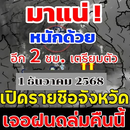 1 ธันวาคม 2568 พยากรณ์อากาศ 24 ชั่วโมงข้างหน้า ภาคใต้ตอนล่างมีฝนลดลง แต่ยังคงมีฝนฟ้าคะนองบางแห่ง เนื่องจากมรสุมตะวันออกเฉียงเหนือกำลังปานกลางพัดปกคลุมอ่าวไทย ภาคใต้ และทะเลอันดามัน ส่วนคลื่นลมบริเวณอ่าวไทยมีกำลังปานกลาง โดยมีคลื่นสูงประมาณ 2 เมตร บริเวณที่มีฝนฟ้าคะนองคลื่นสูงมากกว่า 2 เมตร ขอให้ชาวเรือบริเวณอ่าวไทยและทะเลอันดามันเดินเรือด้วยความระมัดระวังและหลีกเลี่ยงการเดินเรือในบริเวณที่มีฝนฟ้าคะนอง