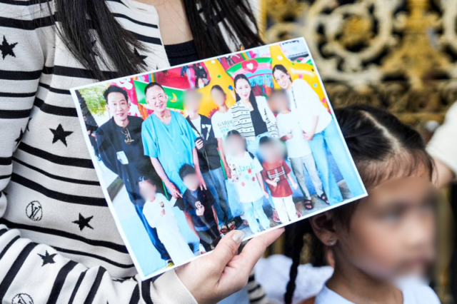 นางสาวแพทองธาร ชินวัตร เดินจูงมือลูกสาวและลูกชายออกมาจากเรือนจำ ขณะเดียวกันในมือถือภาพถ่ายครอบครัว ซึ่งเป็นภาพลูกทั้ง 3 คน และหลานทั้ง 7 คน ถ่ายคู่กับคุณตาและคุณปู่ทักษิณ