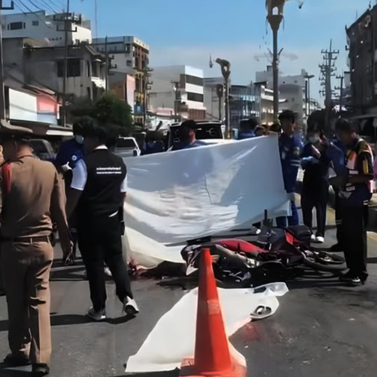 เมื่อวันที่ 10 มกราคม 2569 เจ้าหน้าที่ตำรวจ สถานีตำรวจภูธรท่าม่วง รับแจ้งเหตุว่าเกิดอุบัติเหตุรถจักรยานยนต์ถูกรถบรรทุกพ่วง 18 ล้อทับ มีผู้เสียชีวิต ในที่เกิดเหตุบริเวณตลาดท่าม่วง หมู่ 2 ตำบลท่าม่วง จังหวัดกาญจนบุรี หลังรับแจ้ง จึงได้เดินทางลงพื้นที่ตรวจสอบ พร้อมด้วยแพทย์เวรและอาสาสมัครมูลนิธิขุนรัตนาวุธ